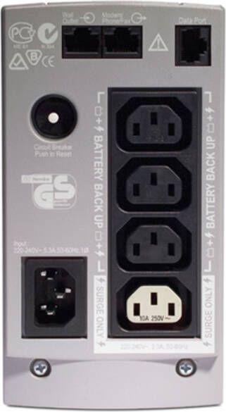 Zekerheid door noodstroom De APC Back-UPS CS 650VA heeft een ingebouwde accu die ervoor zorgt dat alle aangesloten apparatuur, zoals een NAS, router, modem en mediabox blijft werken als de stroom uitvalt. Daarnaast kan deze APC noodstroomvoorziening via de usb aansluiting een NAS of PC ook op tijd automatisch afsluiten. Handig wanneer de APC ups bijna leeg is. Hierdoor voorkom je zowel downtime, schade aan apparatuur, als verlies van gegevens. Veiligheid Daarnaast beschermt deze veilige APC Back-UPS kostbare apparatuur tegen piekspanning die bijvoorbeeld ontstaat door blikseminslag. Verzekering Ondanks het hoge risico op blikseminslag en piekspanning heeft APC het volste vertrouwen in haar producten en biedt op deze APC Back-UPS een Equipment Protection Policy van 100.000 euro. Verleng de levensduur De interne batterij cartridge (RBC17) is eenvoudig, veilig en zelfstandig door de gebruiker te vervangen. Zo verleng je eenvoudig en goedkoop de levensduur van de APC Back-UPS BK650EI.